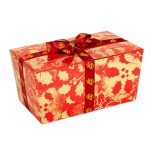 We'll nestle this beauty in suitably festive shred and present it in a beautiful Christmas design RED and GOLD holly ballotin gift box secured with ribbon.